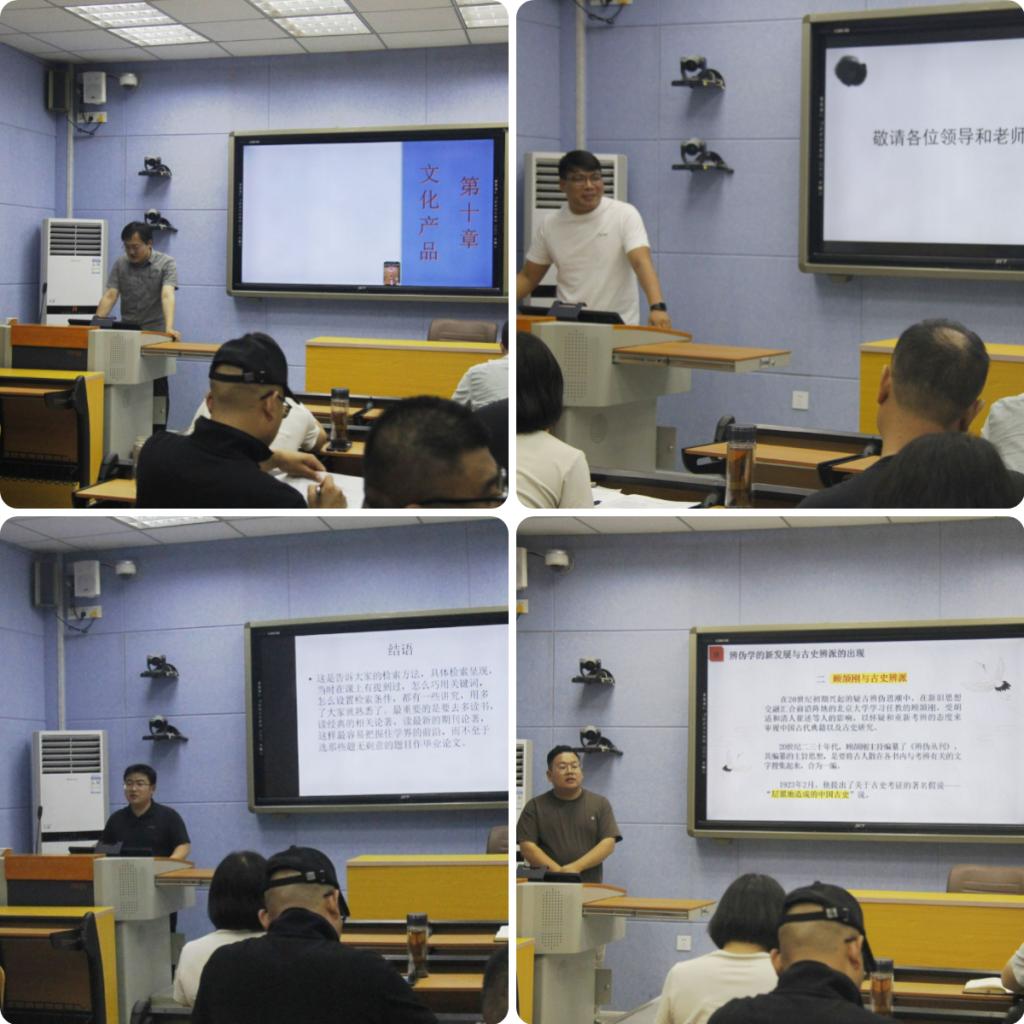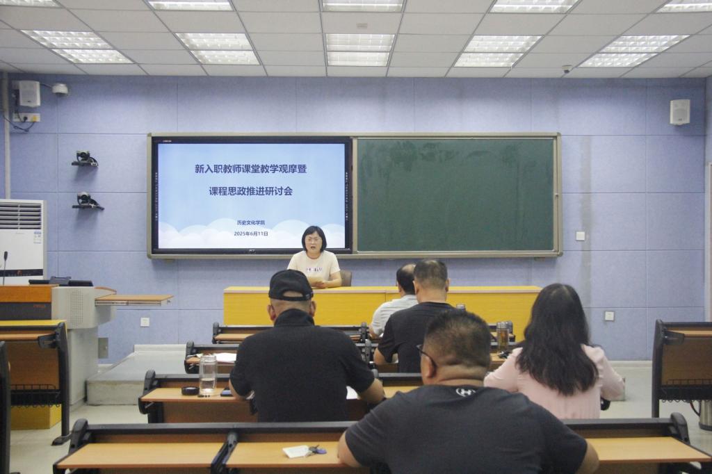 随后,新入职教师依次进行了课堂教学展示:刘文文老师以明清水利史为例,讲授历史文献检索的实践应用;张帅奇老师从夏商周时期的祖先崇拜与宗教意识、阴阳五行观念的萌芽,到西周末年宗教思想的动摇,进行了系统讲解;杨文超老师介绍了辨伪学的发展历程及古史辨派的形成;高天老师则围绕文化产品开发展开教学。各位教师立足学科特色,巧妙融入思政元素,在专业知识传授中自然传递家国情怀、科学精神等价值理念。
