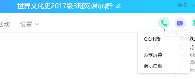 任命学委负责群的日常管理,在群里下达相应的学习任务、传递学习资料,使用QQ群屏幕分享功能,进行上课直播,在每次直播前,先进行系统的调试工作,第一次调试用时约30分钟,之后调试几乎1分钟内解决,十分顺畅。如下: