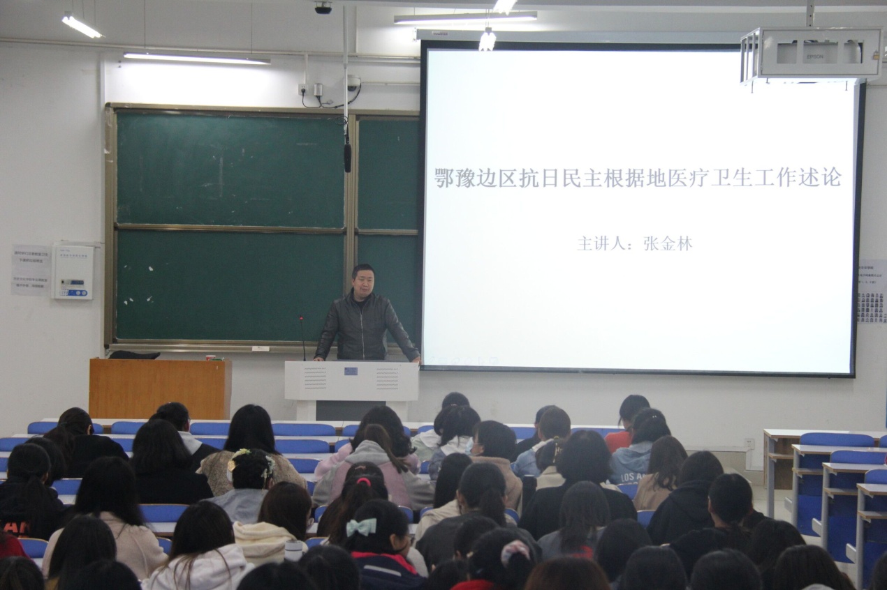 4月1日晚,我院张金林博士在社科楼212教室作了题为“鄂豫边区抗日民主根据地医疗卫生工作述论”的人文视野讲座,2019级历史学专业同学到场听讲。