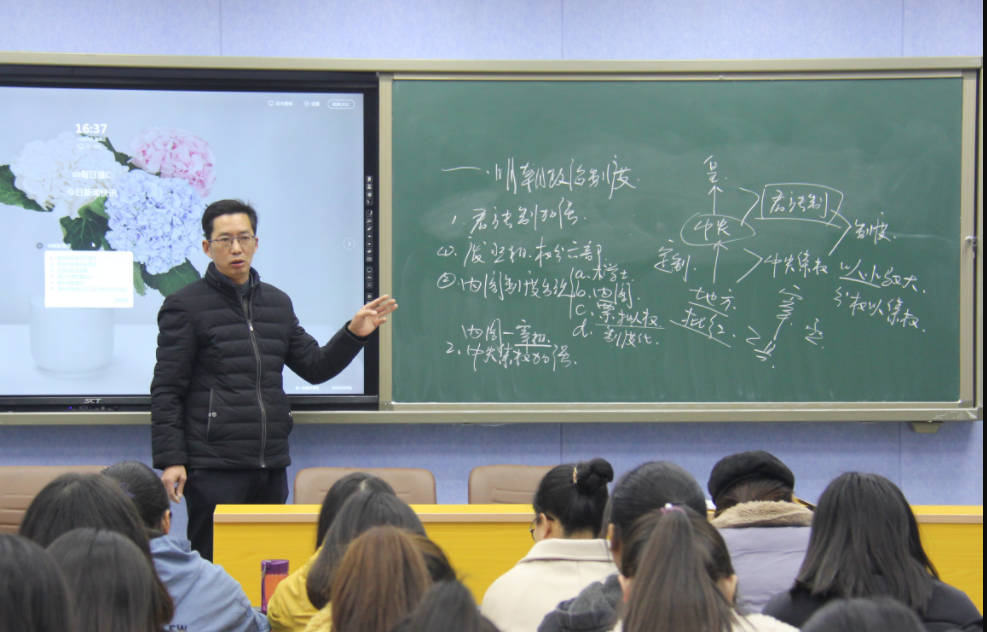 11月27日下午,信阳高级中学高级教师沈军应邀在人文楼706教室,为我院师范生作示范课。我院2018级历史学班和人文教育班部分同学到场听讲。
