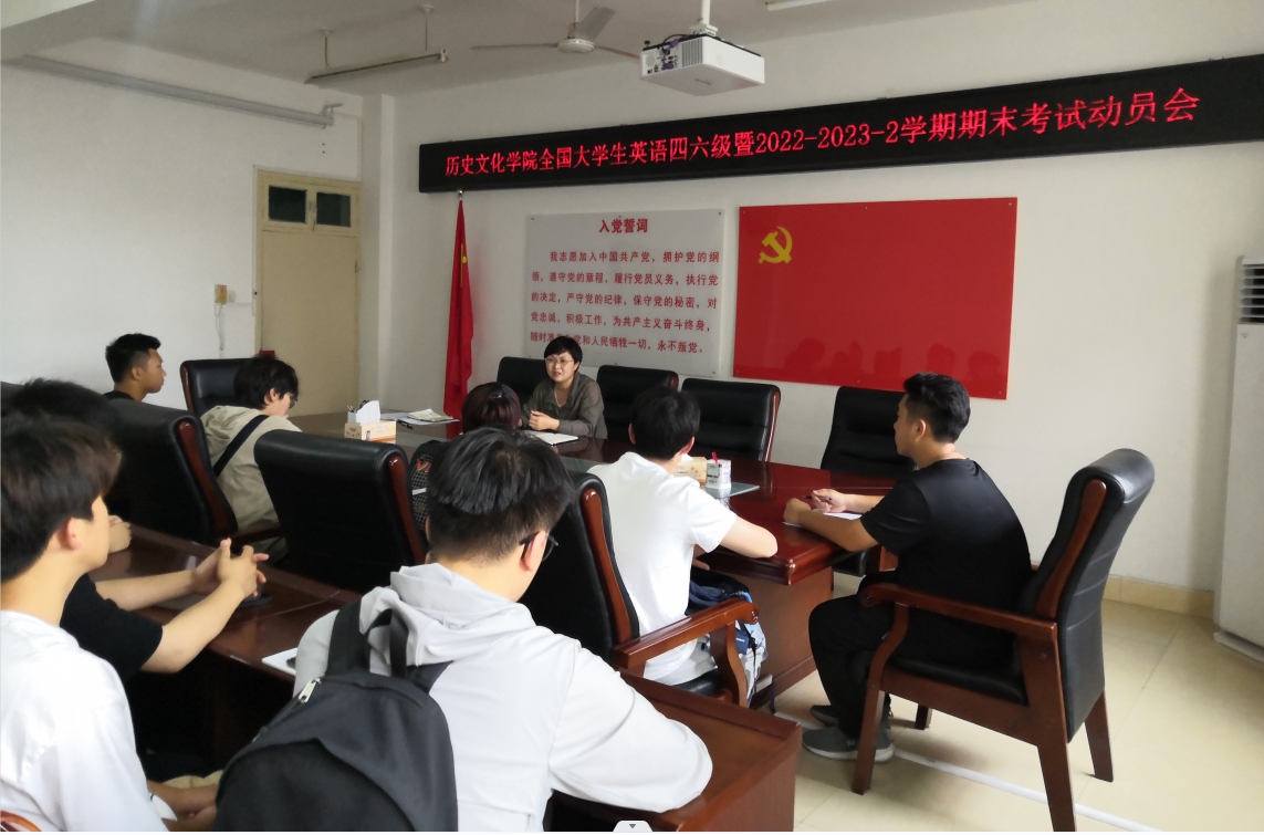 6月16日下午,我院在人文楼805召开了全国大学生英语四六级暨2022-2023-2学期期末考试动员会。教学副院长孙炜及2020级、2021级、2022级各班班委代表参加了会议。
