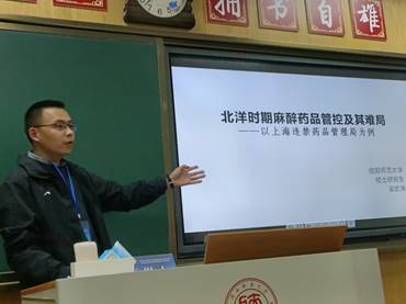 会议期间,我院叶宗宝教授指导的2022级中国史研究生井洋、2023级中国史研究生梁宏涛做了论文报告。其中,井洋以《从1931年武汉大水医疗救济看防疫组织协调关系》为题,探讨了1931年江淮大水发生后武汉地区各救济组织如何开展防疫工作,各组织间如何协调运转等问题;梁宏涛以《北洋时期麻醉药品管控及其难局——以上海违禁药品管理局为例》为题,分析了北洋时期政府对麻醉药品管控的初步尝试与管控困境,两位同学的报告得到了与会学者的热烈回应。