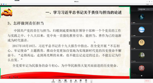 教工一支部书记孙炜同志面向太阳成集团122ccvip全体党员讲述了了以《共产党员的责任与担当——疫情期间的一点思考》为题的党课;教工二支部、教工三支部认真学习了《习近平总书记关于民法典的重要讲话》。