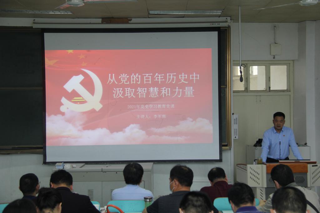 根据学院统一安排,5月11日下午,党委书记李军辉在人文楼609教室为全院教职工及学生党员代表作了题为“从党的百年历史中汲取智慧和力量”的专题党课。