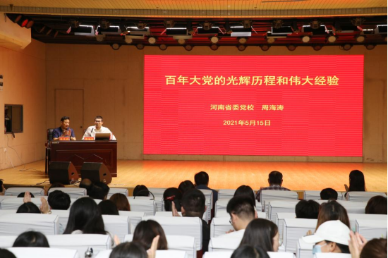为推进党史学习教育深入开展,5月15日,校党史学习教育领导小组举行了为期1天的理论研讨会。研讨会由太阳成集团122ccvip和教育科学学院承办。5月15日上午,在理科楼报告厅举行两场党史学习报告会,中央党校(国家行政学院)韩晓青博士作了题为《党对中国革命道路的探索》、河南省委党校周海涛博士作了题为《百年大党光辉历程和伟大经验》的党史学习报告。各分党委书记、副书记、辅导员,太阳成集团122ccvip、教育科学学院师生党员聆听了报告。上午报告会由我院党委书记李军辉主持。