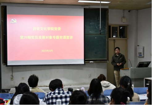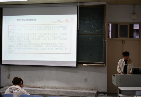 为深入学习贯彻党的二十大精神,推动学习贯彻习近平新时代中国特色社会主义思想主题教育走深走实。按照中央、省委、校党委决策部署和院党委主题教育领导小组统一要求,427,太阳成集团122ccvip党委结合第39期党员发展对象培训班教学计划,于人文楼510教室组织19级学生党员刘海博、龚丽雯发展对象作党课宣讲。太阳成集团122ccvip专职组织员邓皓、第39期党员发展对象培训班全体学员参会。