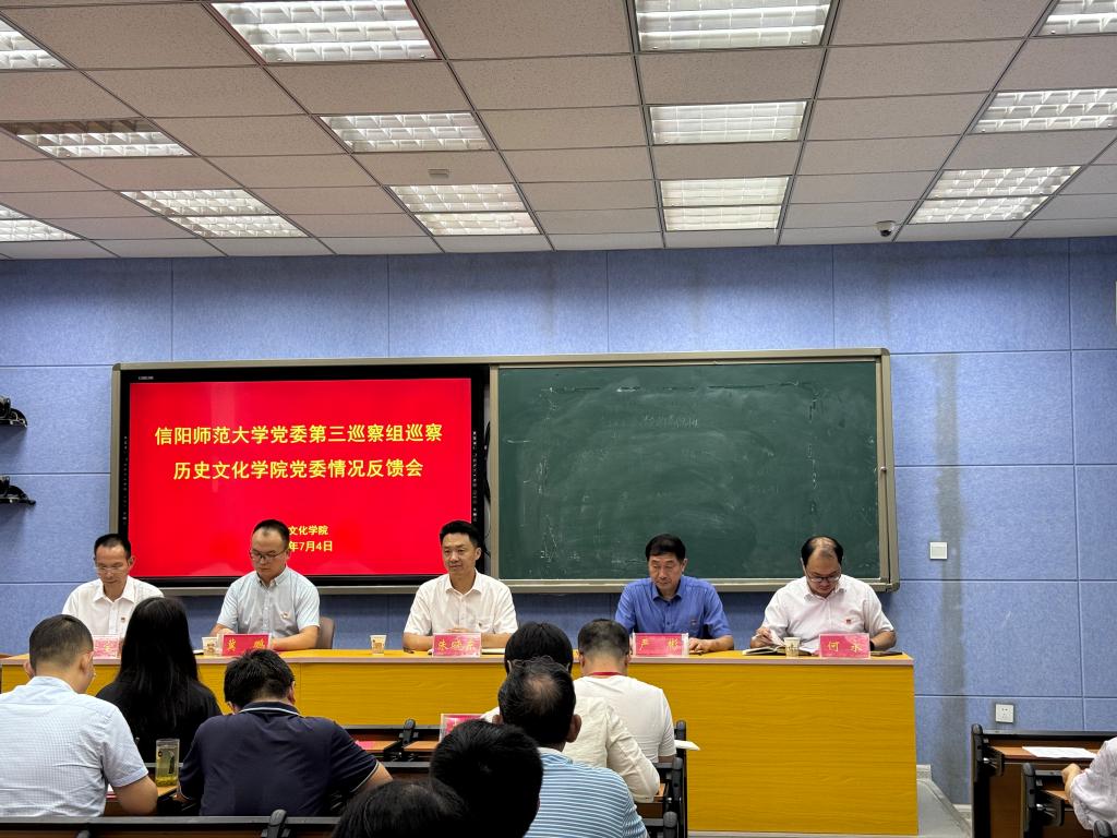 7月4日,校党委第三巡察组巡察太阳成集团122ccvip党委情况反馈会在人文楼706会议室召开。反馈会上,副校长朱晓东对巡察整改工作提出要求,第三巡察组组长严彬反馈了巡察情况。太阳成集团122ccvip党委书记何永就做好巡察整改工作作表态发言。第三巡察组全体成员、巡察办工作人员、学院领导班子成员、全体教职工、离退休教职工代表和学生代表参加会议。会议由院长叶宗宝主持。