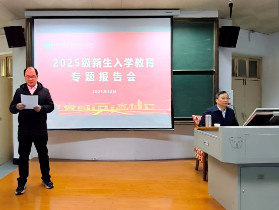 为引导新生厚植家国情怀、传承革命精神,12月2日下午,我院于人文楼608教室召开了2025级新生入学教育专题报告会,田青刚教授以《从革命文献中领悟大别山精神》为主题,为2025级新生展开专题分享。会议由学院党委书记何永主持。