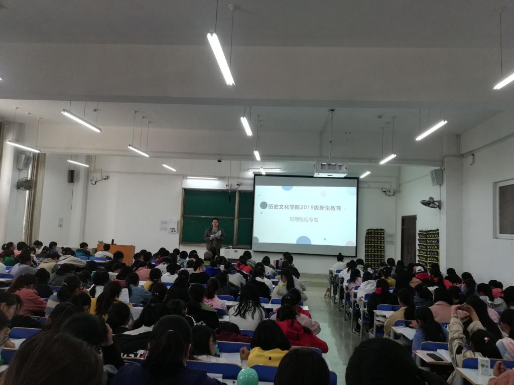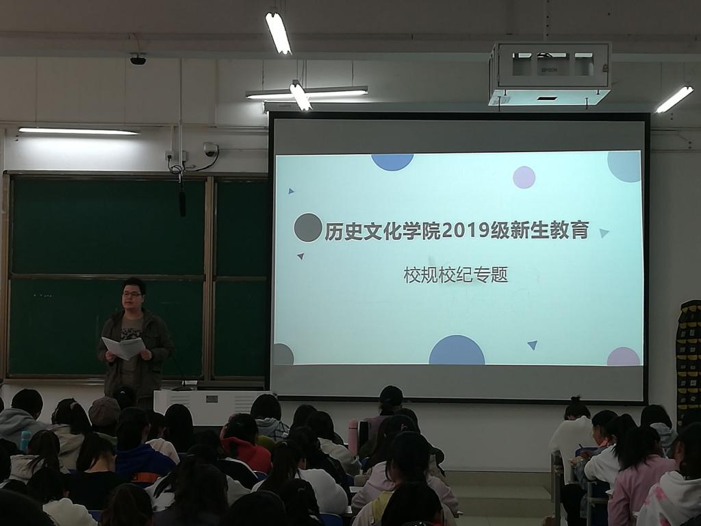 为了加强大一新生的校规校纪的教育,树立学生的纪律意识和制度意识,11月15日上午,我院在社科楼212教师进行“新生入学教育——校规校纪专题”宣讲会。专职辅导员王道歆老师主讲,全体大一新生参与了此次活动。