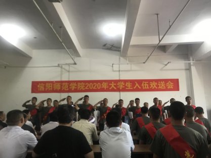 9月3日下午,我院党委副书记刘喜元、武装干事付亚男应学校武装部安排,前往浉河区役前训练基地参加2020年应征入伍大学生欢送会。