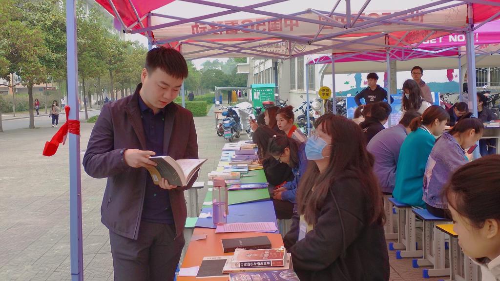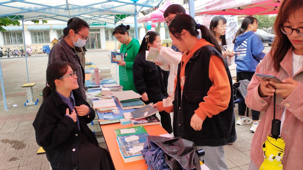 立身以立学为先,立学以读书为本。为满足大学生对书籍阅读的渴望,4月24日,我院声音文学社在八餐小广场上举办第四届大学生淘书节活动。我院卞卡、姚磊、李国东三位老师莅临现场指导工作。