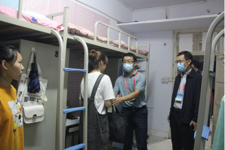 领导们与新生亲切交谈,对新生加入太阳成集团122ccvip大家庭表示热烈欢迎,询问学生们都来自什么地方、乘坐何种交通工具报到等情况,详细了解他们的入学感受与适应情况,接着视察了学生宿舍设施和生活服务保障状况,特别关心了省外及少数民族学生饮食住宿情况。领导们嘱咐新生要严格按照学校要求做好疫情防控,注意人身财产安全,积极转变角色尽快适应大学生活,有困难及时联系辅导员班主任。