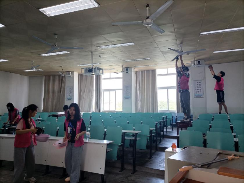 为按时完成劳动任务,提升劳动质量与效率,青校学子上午八点四十便于人文楼510集合,领取各自任务,打扫我院专业课教室,其中包括扫地、拖地、清理垃圾、擦拭电风扇、玻璃等。分工结束后,同学们便积极投入紧张的劳动之中。在小组长的带领下,同学们对我院教室人文楼509、510、609以及社科楼212进行干净彻底的打扫。义务劳动期间,大家充分发扬不怕苦、不怕累、甘于奉献的精神品质,认真负责、分工明确,将教室每个区域打扫的十分干净整洁,室内环境得到明显改善,焕然一新。