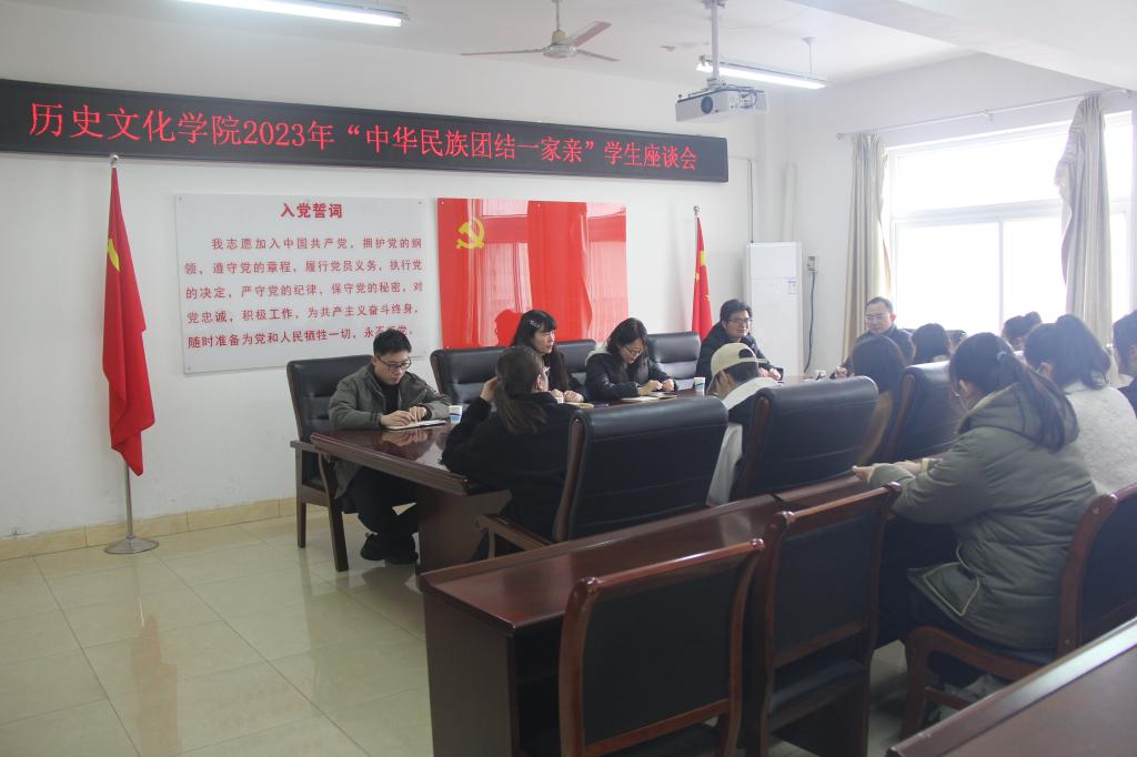 3月21日下午,太阳成集团122ccvip于人文楼805会议室召开“中华民族团结一家亲”学生座谈会。学院党委副书记韩志宏,专兼职辅导员吴慧娟、付亚男、邓皓、邹维一、惠鹏飞及各民族学生代表与会。