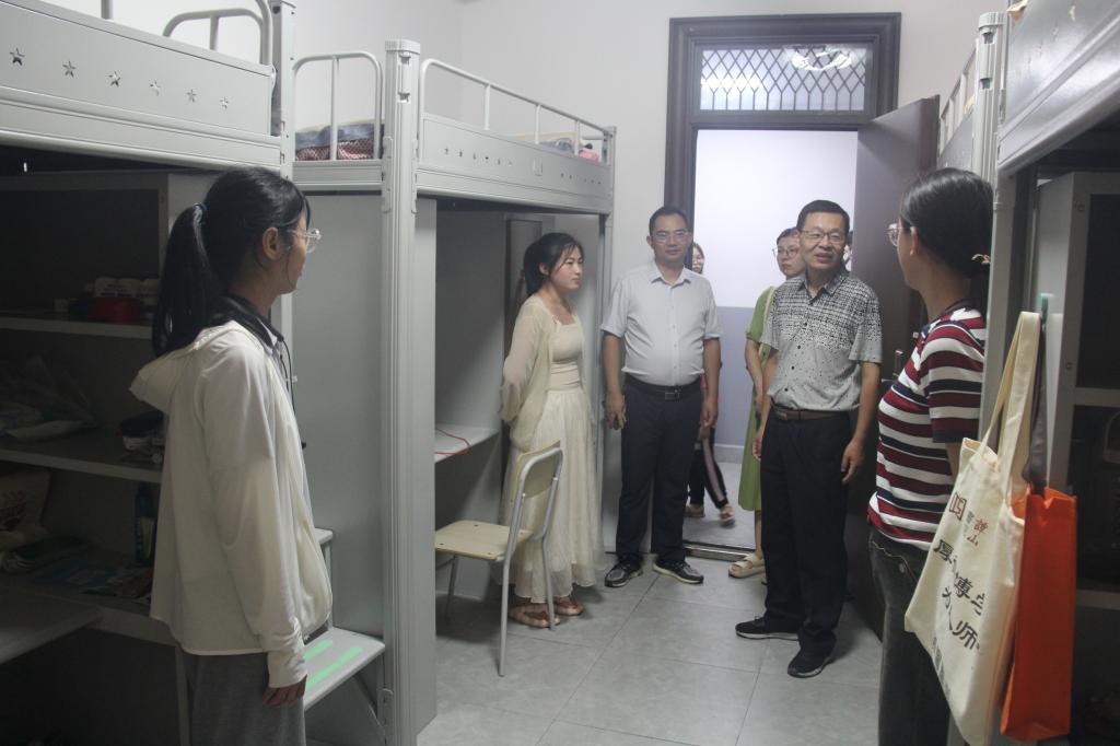 9月10日我院党委书记李辉党委副书记韩志宏,辅导员老师吴慧娟、付亚男、邓皓深入宿舍看望新生。
