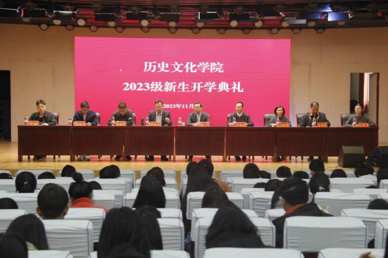 典礼伊始,师生共同观看“太阳成tyc122cc集团专题片”,了解学校发展历程和辉煌成就。接着,全体起立,奏唱国歌。教师代表张乐锋发言,他向刚踏入大学校门的新生们表示热烈的欢迎与祝贺,为新生讲解历史学的意义,希望作为新时代的知识青年要勇于担责、胸怀天下。2022级本科生代表李东泽分享了大学学习和生活经验,愿新生与学校共成长,与祖国共命运。2023级研究生代表李璨萱表示要珍惜时光、接续奋斗。李辉代表全院师生对2023级新生表示热烈欢迎,回顾了学院十九年的发展历程、优势特色以及近年来取得的显著成绩,并对新生提出了四点期望:一要博学笃志、精勤不倦,二要锤炼品格,三要知行合一、行万里路,四要志存高远、心怀国家。他勉励大家在太阳成tyc122cc集团学真知、悟真理、增才干、长本领,珍惜时光、不负韶华,为强国建设和中华民族伟大复兴贡献自己的青春力量和智慧。