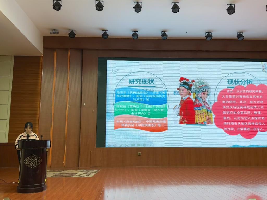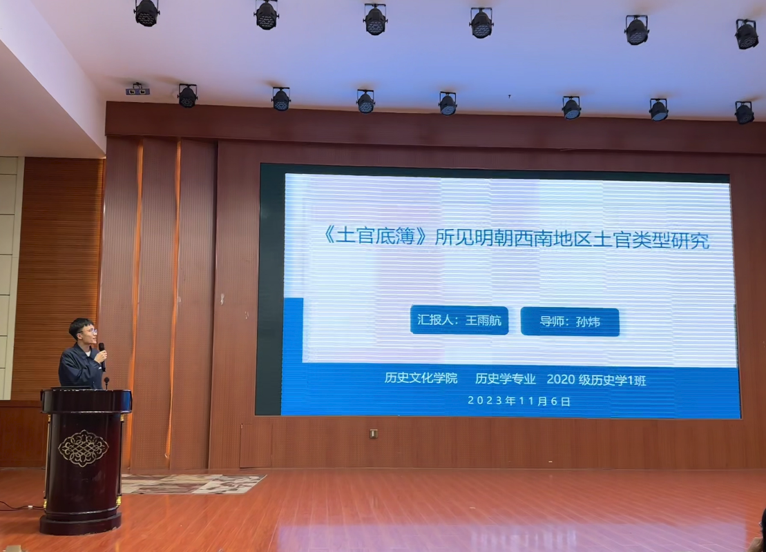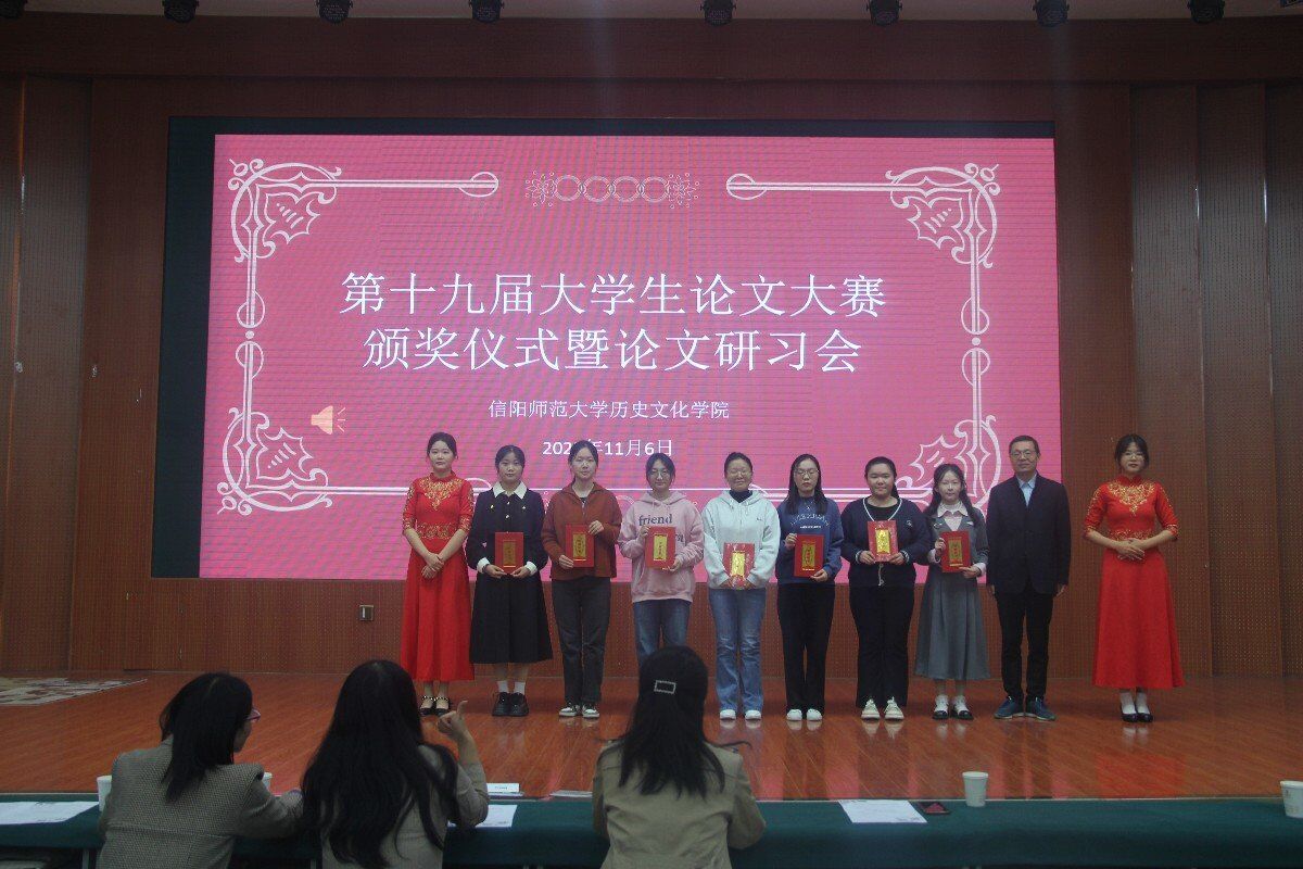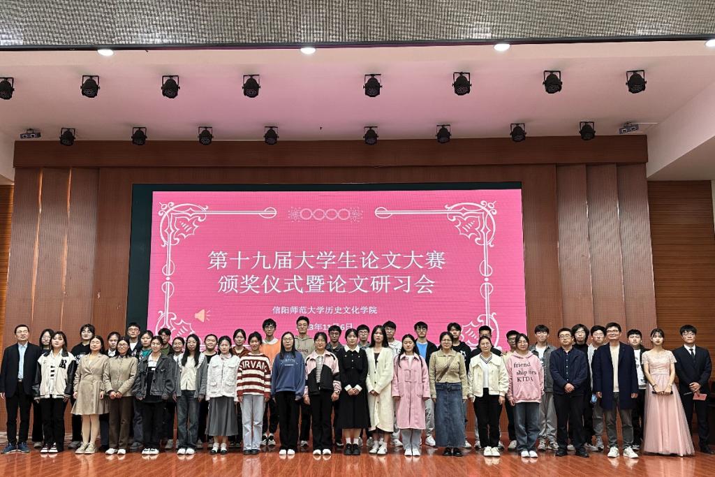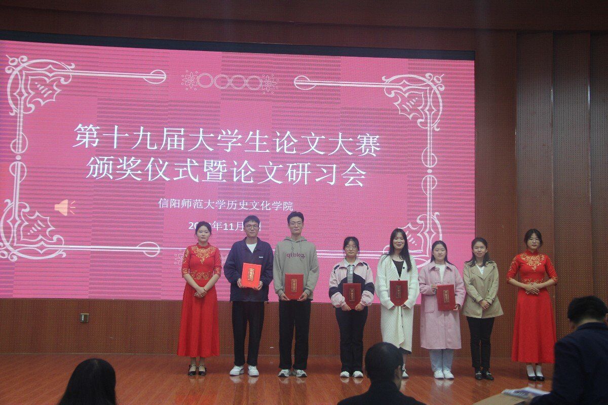 活动伊始,主持人介绍了研习会是旨在提高学生的科研能力,活跃学术思想,提高同学们的论文写作能力和学术创新参与率。李志坚宣读本次研习会论文获奖名单,由各位领导嘉宾为获奖同学颁奖。欣赏完民族舞《爱我中华》表演后,进入论文汇报阶段。2020级历史学3班韩爽、2021级文化产业管理班任思莹、2021级历史学2班田艳瑞、2021级历史学1班王江涛和2020级历史学1班王雨航分别阐述了自己的论文《民国时期河南光山县公路交通与经济发展》《互联网背景下信阳毛尖品牌形象塑造研究汇报》《明清安庆地区黄梅戏传入问题研究》《宋代修景与地方秩序——从士大夫的政治逻辑说起》《〈土官底簿〉所见明朝西南地区土官类型研究》。五位同学的论文选题新颖、结构完整、逻辑清晰,充分展现了我院学子良好的学术文化素养。各位评委老师点评精准到位,既肯定了论文的现实意义,也提出了可行性修改意见,深入浅出,令同学们受益匪浅。最后李辉作了总结发言,他首先感谢了长期以来支持和关注我院建设发展的领导老师,宣布第十九届大学生论文大赛已圆满画上句号。他勉励同学们要担当责任和使命,深入学习贯彻习近平文化思想,要坐得了冷板凳,敢于走出书房,迈向祖国大地,让习近平文化思想之花绽放在祖国的每一个角落。