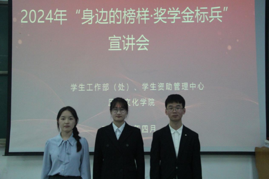 为深入贯彻党的二十大精神和习近平新时代中国特色社会主义思想,充分发挥奖学金获得者青年榜样的示范引领作用,4月18日下午,我院于社科楼212举行了“身边的榜样·奖学金标兵”宣讲活动。