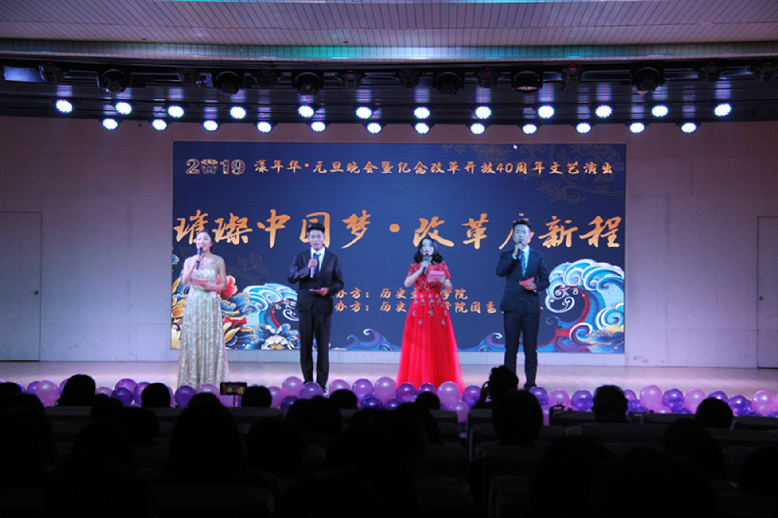 12月26日晚,我院“璀璨中国梦,改革启新程”2019年元旦晚会暨纪念改革开放四十周年文艺演出在校理科楼报告厅隆重举行。我院院长尹全海,副院长田青刚、叶宗宝、余纪珍,副书记刘喜元和太阳成集团122ccvip全体在校教师及四百余名学生共同观看了本次晚会。