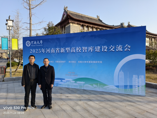 11月24日,2025年河南省新型高校智库建设交流会在河南大学郑州校区召开,院长叶宗宝、副院长李志坚代表我校智库根亲文化与两岸交流研究中心参加交流会。