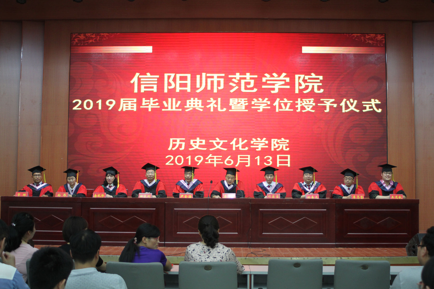 毕业典礼在庄严的国歌中拉开序幕。叶宗宝宣读了《信阳师范学院关于授予2019届毕业生硕士学位的决定》《信阳师范学院关于授予2019届毕业生学士学位的决定》。2015级文化产业管理班完瑞红同学代表2019届毕业生发言,表达了对师恩的难忘,同窗的不舍,对在校四年求学生涯的留恋,以及对未来生活的无限憧憬。2016级文化遗产班王喜亭作为在校生代表发言,她感谢学长学姐在学习、工作以及生活中给予的指导和帮助,并为学长学姐送上最真挚的祝福。