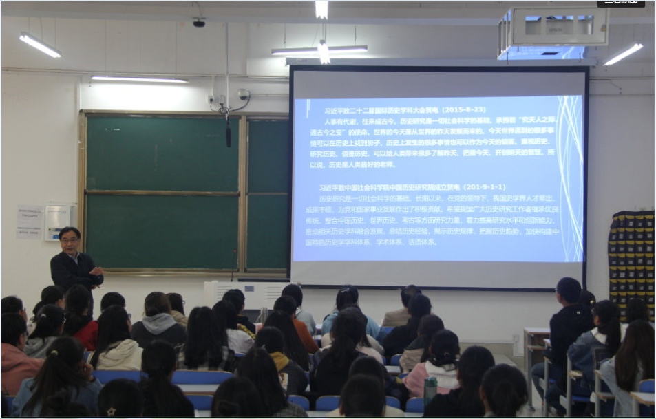10月18日上午,我院院长尹全海教授在社科楼212教室为2019级历史学专业180余名新生作了入学教育讲座。院党委副书记刘喜元、辅导员付亚男等共同聆听了讲座。