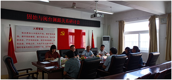 座谈会的主题是固始根亲文化研讨会的筹备。杨光、林扬、孙玉莲对第十届固始根亲文化节,特别是根亲文化研讨会的地位、意义及具体筹备工作进行了介绍,希望从学术层面借助我院的专业队伍,共同承办根亲文化研讨会。尹全海回顾了以往与固始县合作承办根亲文化研讨会的历程,介绍了我院根亲文化方面的学科建设、人才培养、科研成果等情况。双方对根亲文化研讨会的议程、约稿以及疫情应对等问题进行深入交流。座谈会后,杨光等一行还实地考察了根亲文化与两岸交流中心,尹全海对中心的资料收藏、研究成果等进行了系统介绍。