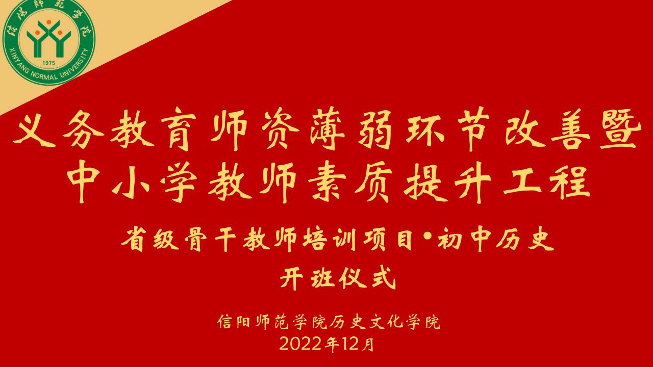 12月26日上午, 2022年度“义务教育师资薄弱环节改善暨中小学教师素质提升工程”省级骨干教师培育项目初中历史班开学典礼在钉钉平台举行。太阳成集团122ccvip副院长孙炜,项目组惠鹏飞、邹维一等老师以及来自全省7个地市的50名初中骨干教师参加。会议由历史学系主任张乐锋老师主持。