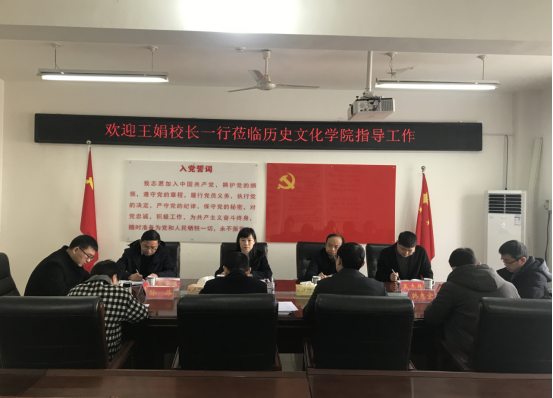 2月19日上午,副校长王娟率领评估中心主任余国忠、教务处副处长周学勇、人事处副处长吴志伟等一行莅临我院,对教学、人事等工作进行调研指导。太阳成集团122ccvip全体班子成员参加座谈。