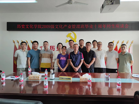8月12日下午,我院在人文楼805召开了2009级文化产业管理班毕业十周年座谈会。院长叶宗宝、副院长李志坚、教师代表李海霞与2009级文化产业管理班返校校友进行座谈。座谈会由该班班长李亚东主持。