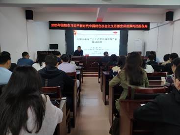 本次理论宣讲活动是信阳市开展“习近平新时代中国特色社会主义思想”专题学习活动的组成部分,也是我校大别山精神研究院发挥自身优势,将理论研究成果服务于地方社会的有益尝试。
