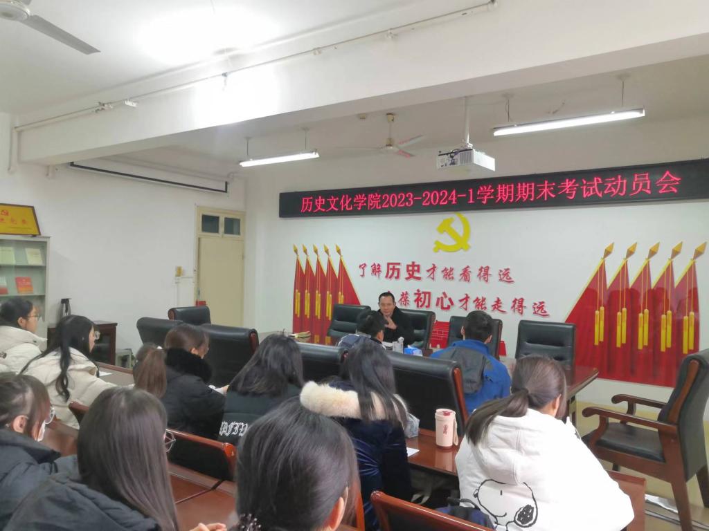 12月28日上午,我院2023-2024学年第1学期期末考试动员会在人文楼805教室召开。院长叶宗宝、教学秘书宋玉峰,各本科教学班干部代表参加会议。