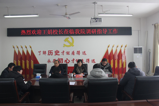 2月26日上午,学期伊始,冰雪初融。副校长王娟在教育教学评估中心主任余国忠、教务处副处长周学勇陪同下来我院调研指导教学和学科建设等工作。学院班子成员参加。