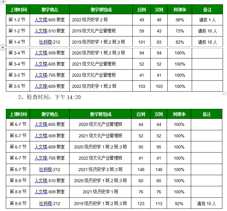 日,我院教学自查小组在叶宗宝院长、李辉书记带领下对上课班级师生到课情况进行了检查,现通报如下: